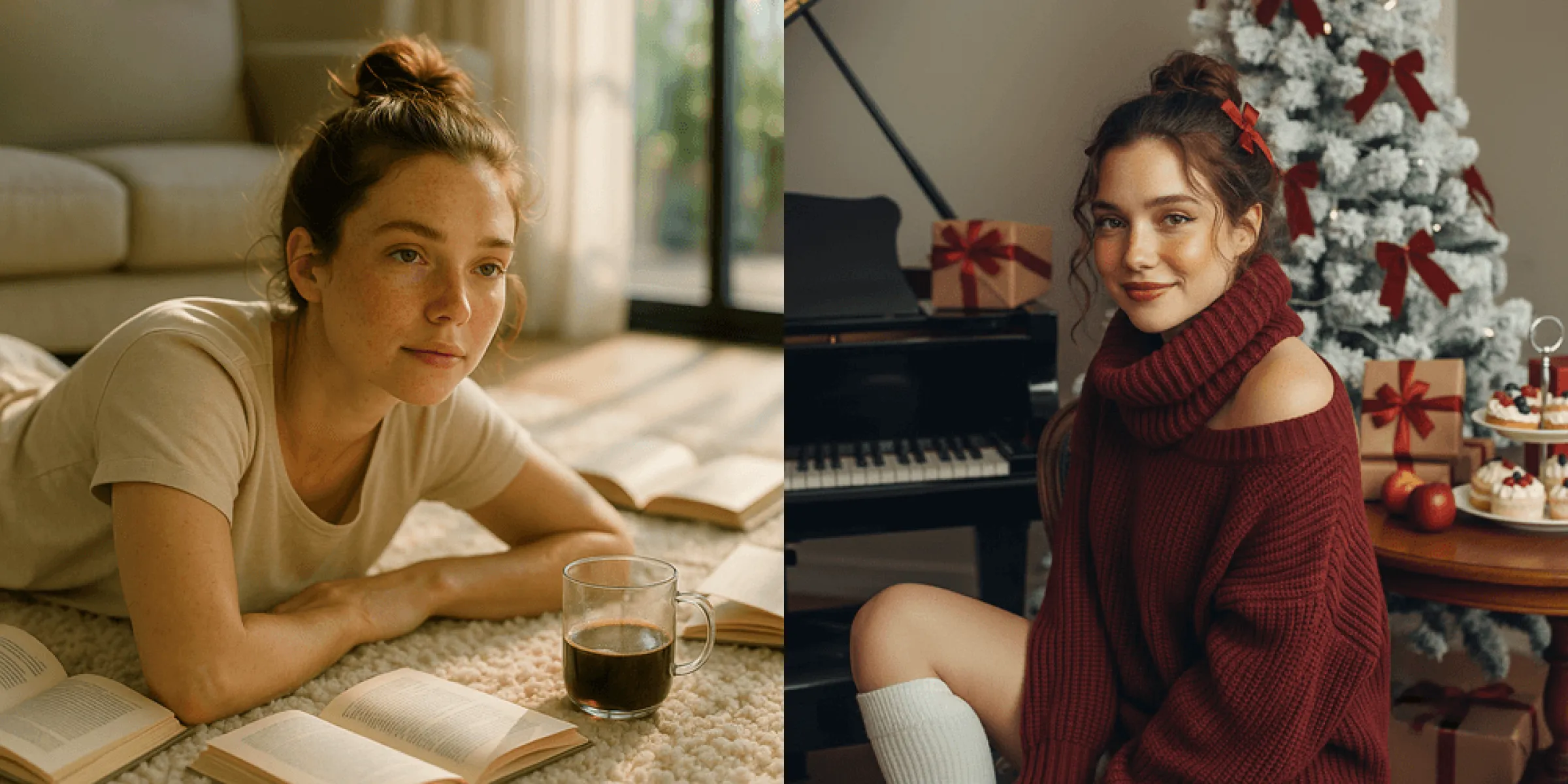 Unlike exaggerated or heavily stylized Christmas visuals, cozy Christmas atmosphere portraits focus more on: