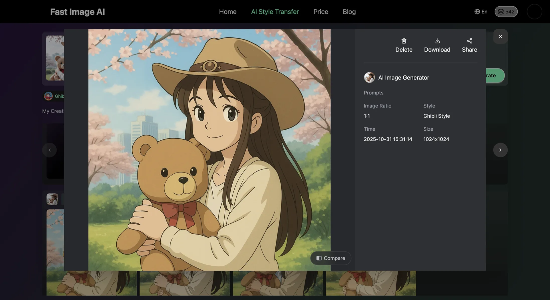 Click the Generate button and wait for a few seconds while AI processes your request and creates a brand-new Ghibli-style image.