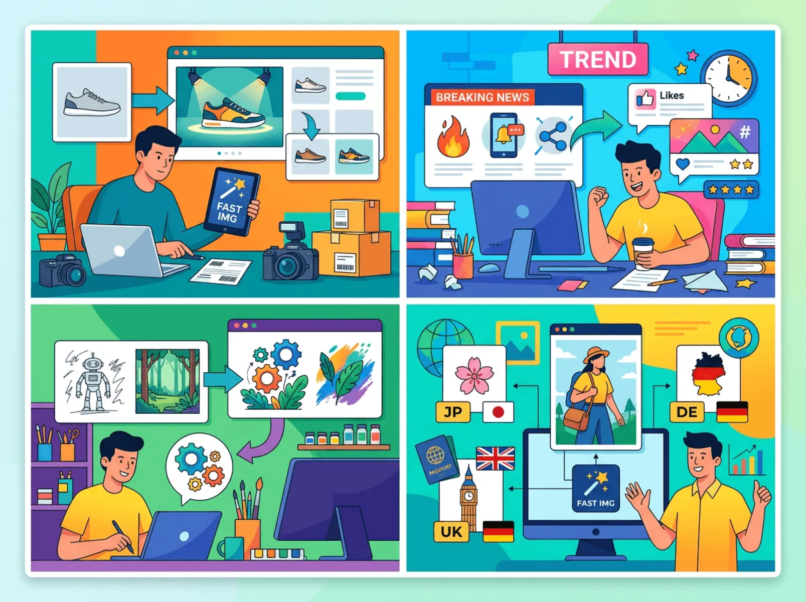 Whether for individual creators or enterprise-level users, Fast Image AI can create customized creative solutions, truly achieving one tool for multiple uses and fully covering diverse creative needs: