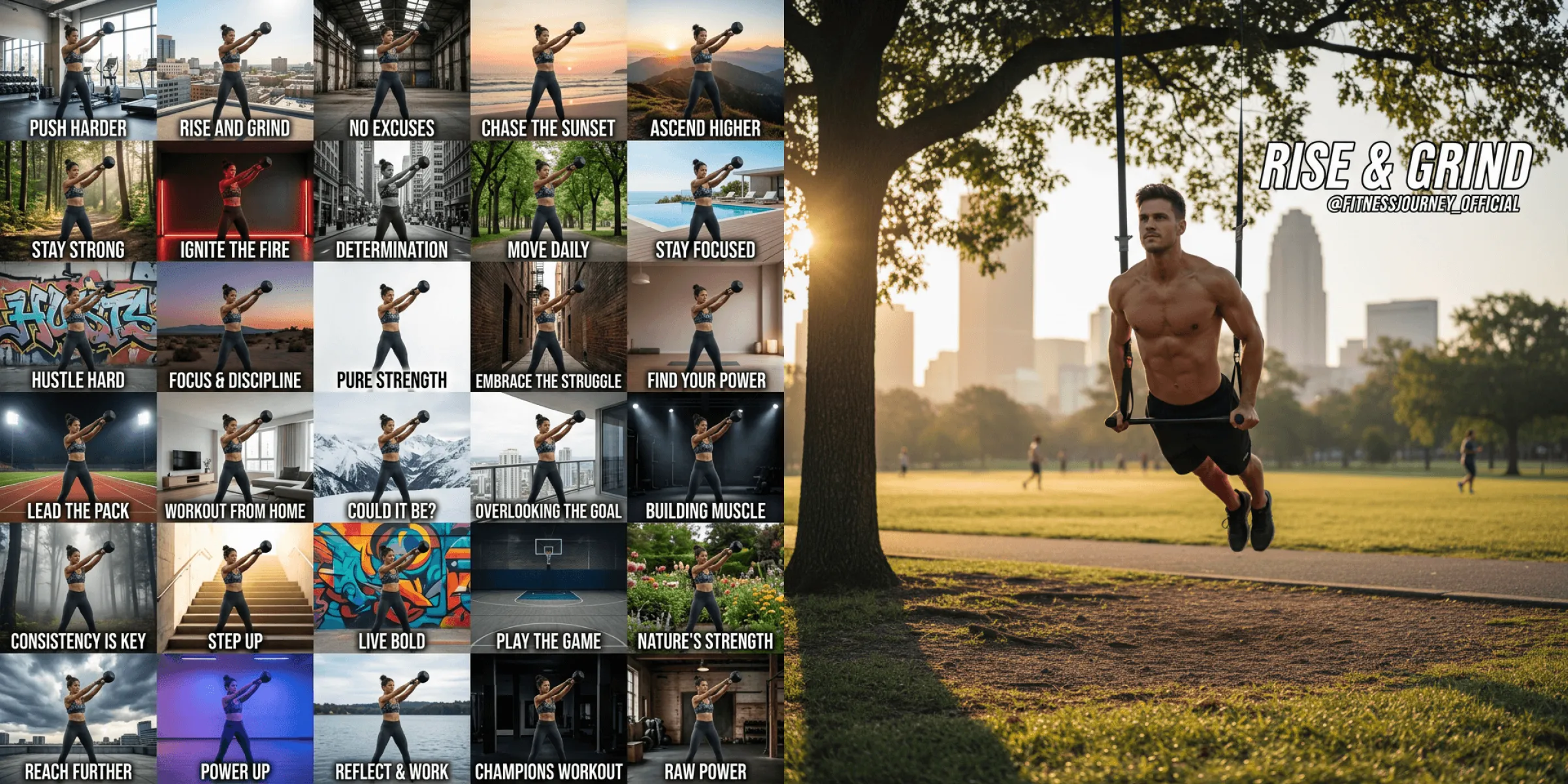 Example: Fitness blogger materials — based on a single workout photo, generate 30 matching images with different backgrounds and lighting effects, which can be overlaid with motivational text. The character form remains consistent, making the content perfectly suited for Instagram, TikTok, X, and other platforms.