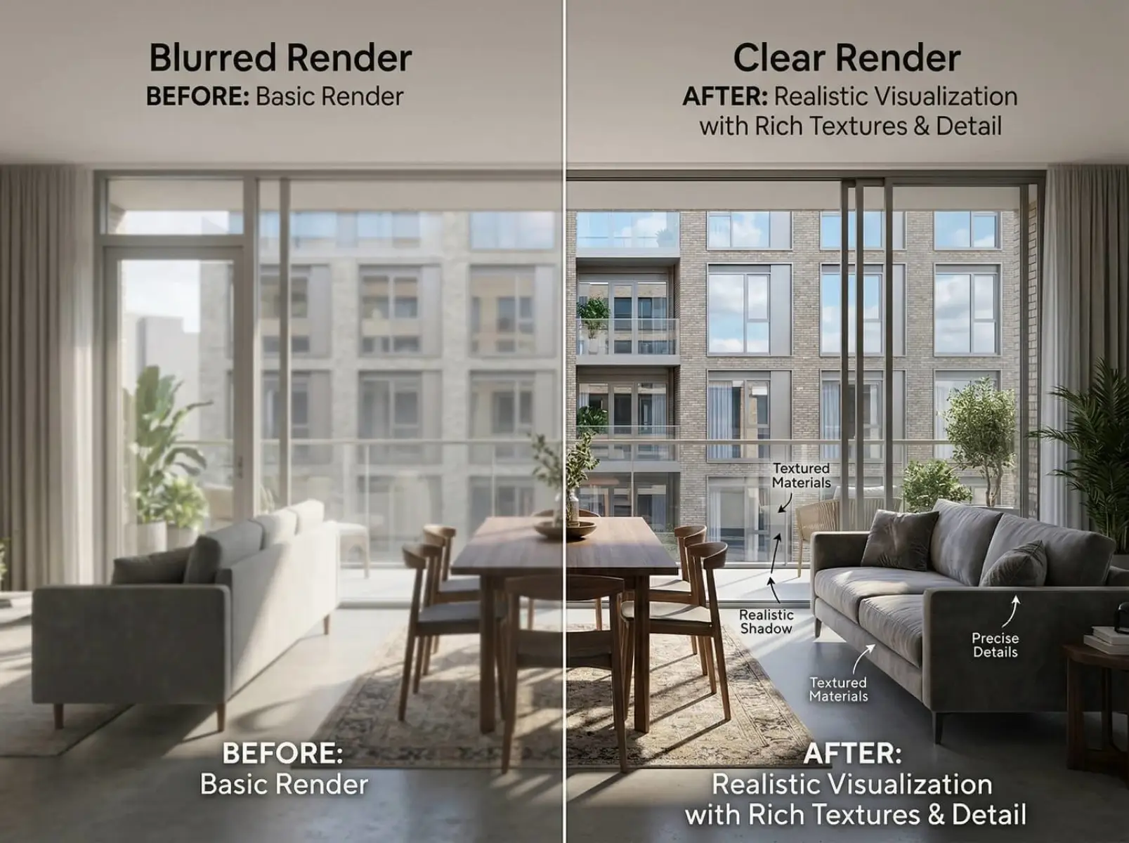 - Interior Design and Architecture: Precisely adapt to indoor and outdoor architectural scenes, and bidirectionally optimize light, shadow, and detail texture. For interior design drawings, it intelligently enhances indoor light layers, restores the true texture of walls, floors, furniture, and other materials, softens the rigidity of design drawings, and makes space layouts and soft decoration collocations more realistic and immersive. For architectural exterior drawings, it strengthens facade texture, outlines clear lines, optimizes color contrast, highlights the building’s design sense and three-dimensionality, and endows architectural works with inherent visual impact. Whether for design scheme displays or architectural photography, it delivers professional-level results;