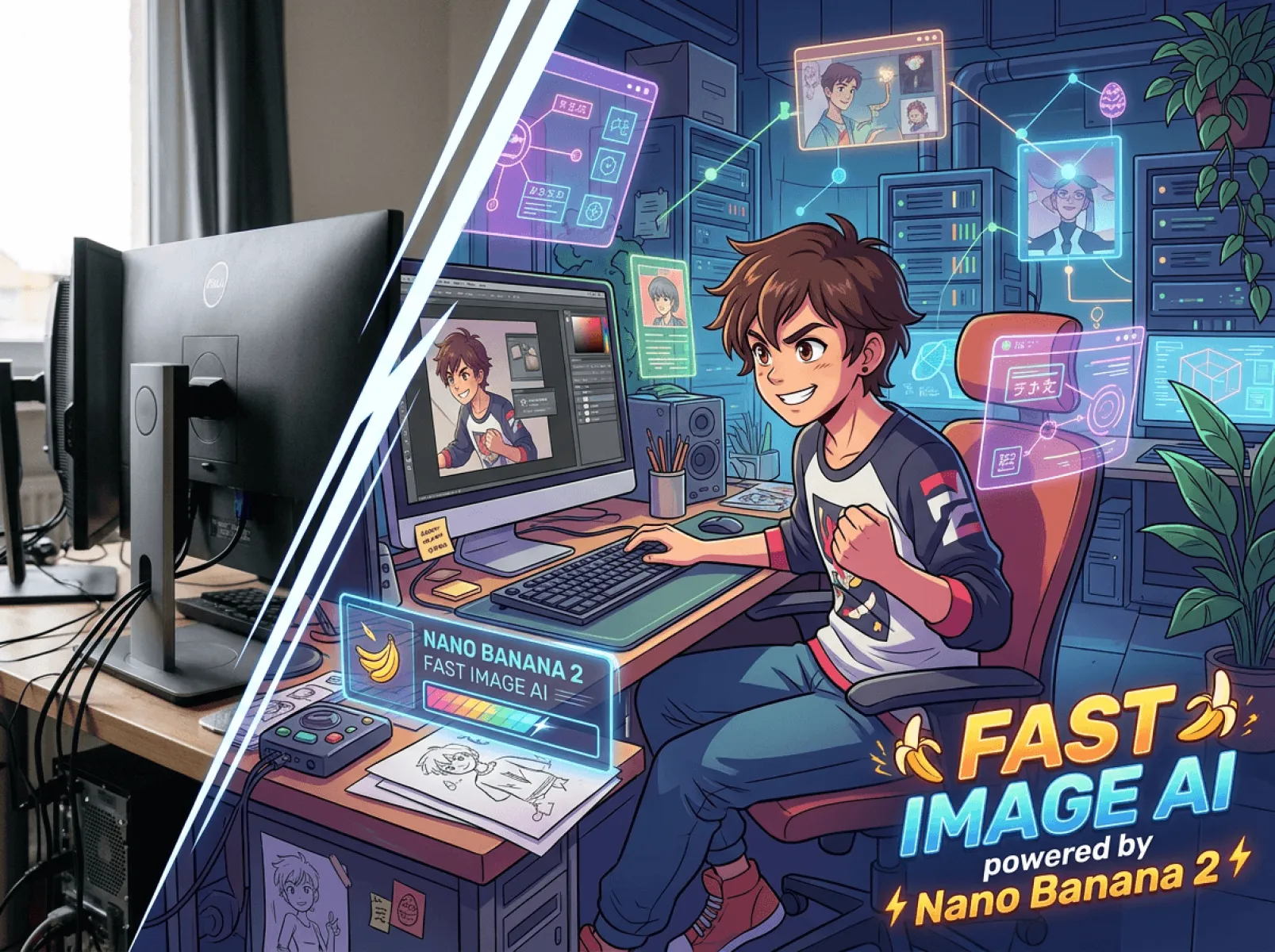 After integrating Nano Banana 2, Fast Image AI’s cartoon generator achieves over 60% faster output than before: simple cartoon avatars take only 3–5 seconds, and complex multi-character, multi-scene illustrations are completed within 10 seconds—a 70% time reduction compared to traditional tools. This breakthrough comes from Nano Banana 2’s in-depth architectural optimization: it perfectly combines the advanced world knowledge and visual quality of Nano Banana Pro with the ultra-fast generation speed of Gemini Flash, significantly improving inference efficiency without compromising image quality. No high-performance GPU is required; users can generate quickly on regular computers and mobile browsers, enabling true "input-generate immediately, modify-preview instantly."