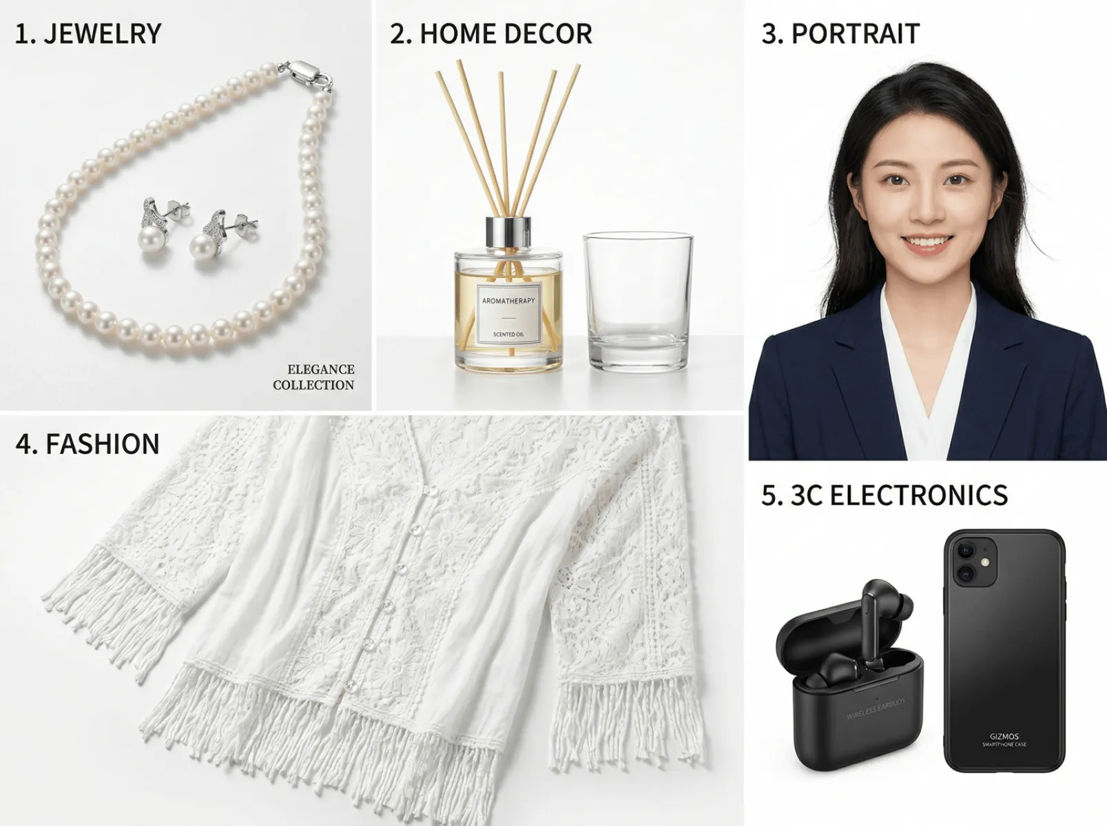 Digitale Händler (3C): Bei stark reflektierenden Kopfhörern, Handyhüllen und metallenen Accessoires bewahrt die KI Glanzlichter und Schichten. Es entstehen reine, saubere Weißhintergründe, die perfekt den Anforderungen von Hauptbildern auf Plattformen wie JD.com, Pinduoduo und anderen entsprechen und die Genehmigungsquote deutlich erhöhen.