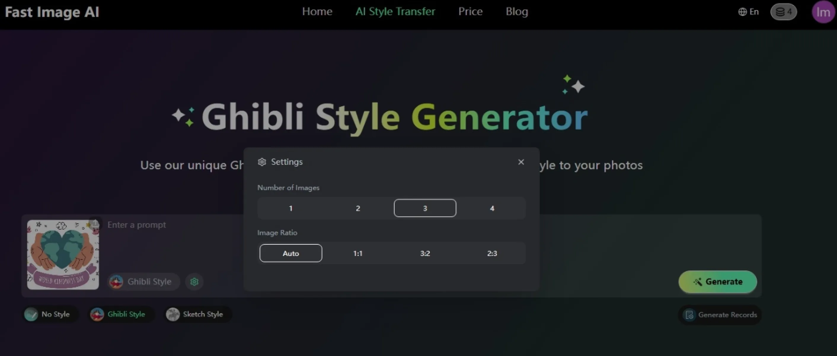 - Wenn Sie bereits ein Bild haben und einen Stil anwenden möchten (z. B. Ghibli, Skizze usw.), laden Sie dieses Bild hoch.