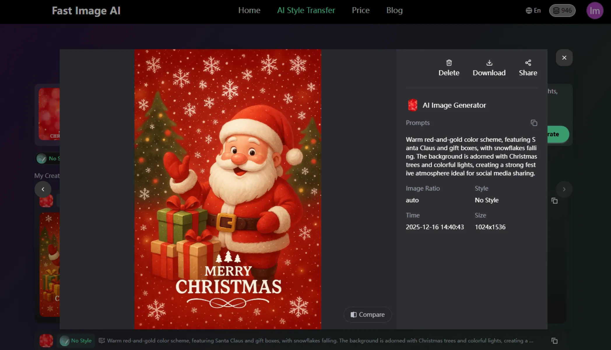 这意味着你只需输入一句简短的提示,AI 就可以输出图片。比如输入:“圣诞老人、雪景、霓虹灯、促销优惠”,AI就会生成带有这些元素的图像。让你从“图像创作”这一环节彻底解放出来。
