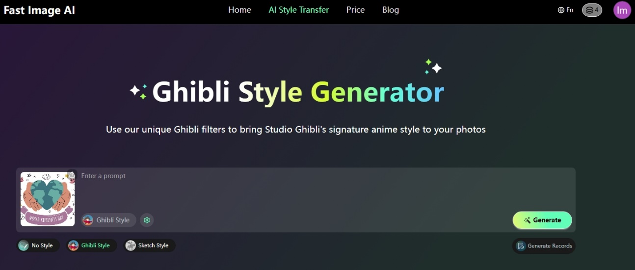 - 如果你已有一张图片想进行风格转换(如吉卜力、素描等),就上传此图片。
