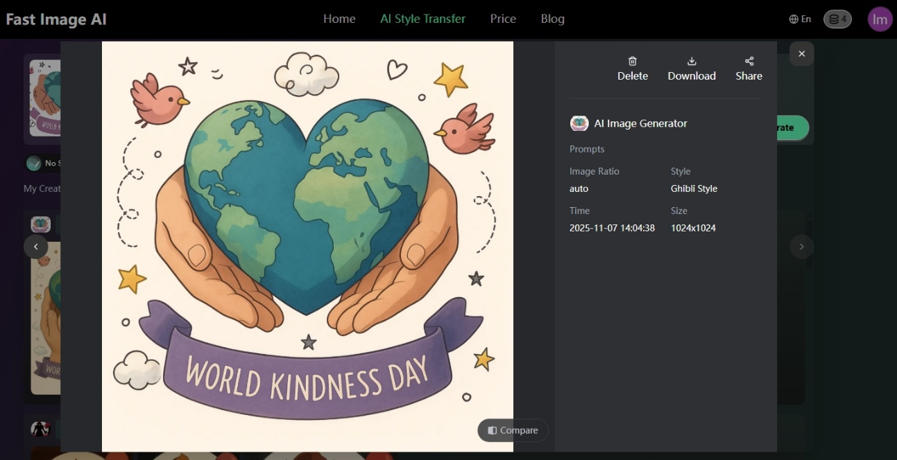 将“国际善意日”作为节假日设计的切入点,不仅具备情感营销价值,也为设计师提供了丰富的创意空间。而借助 Fast Image AI 这样一款高效且多功能的在线图像生成工具,你可以更快速、更具创意、更灵活地产出适合节日主题的视觉内容。